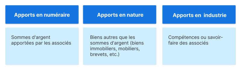 Le capital social est constitué de différents apports effectués par les associés au moment de créer la société :
